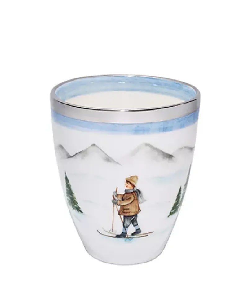 Sofina Porzellan Edles Handwerk|Vasen|Handbemalte Porzellan Vase Skifahrer Junge Nostalgie mit Platinrand