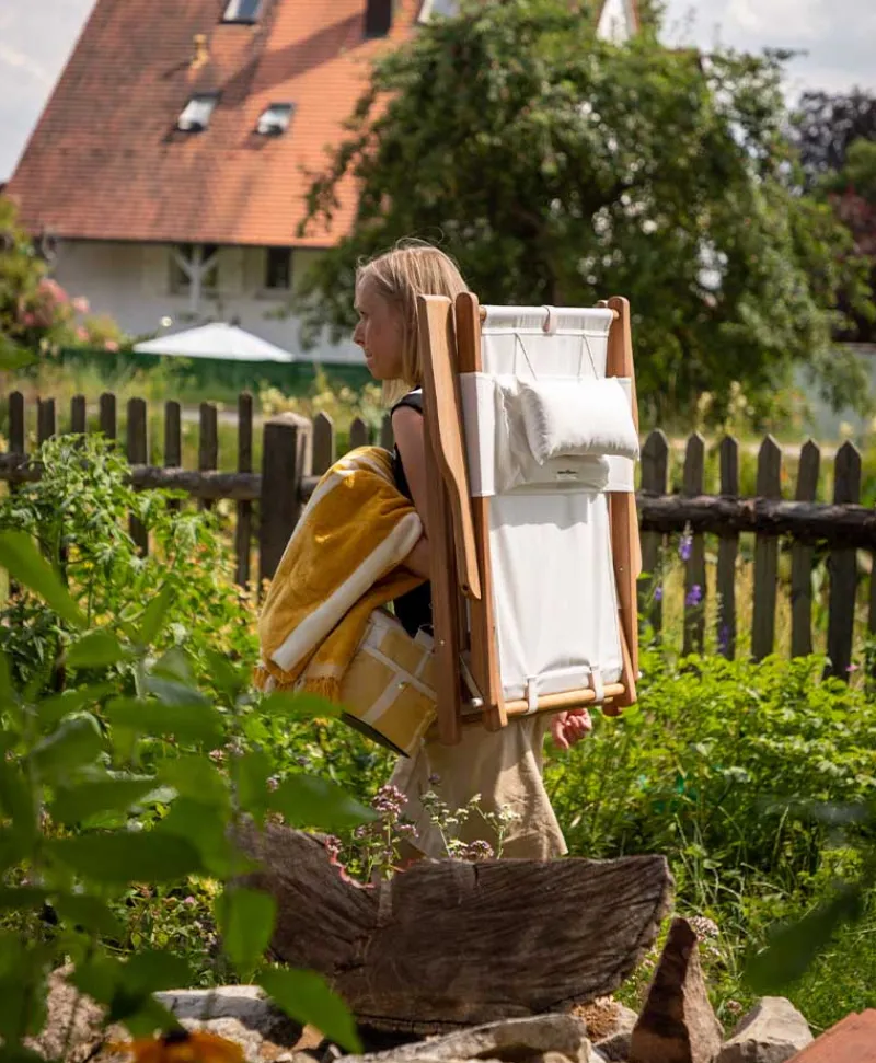 - Material: Teakholz, Stoff ist UV-, schimmel- und wasserbeständig