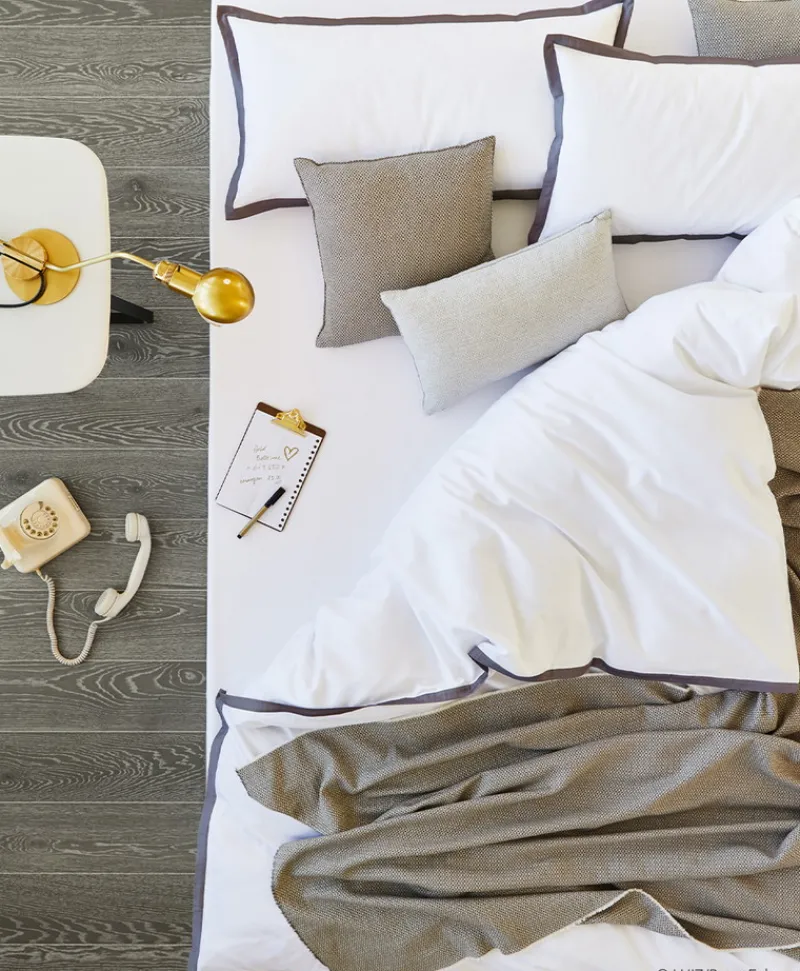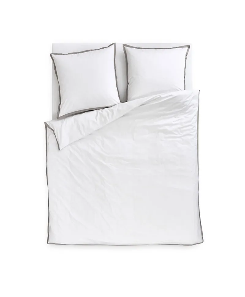 - weiße Bettwäsche mit farbigem Stehsaum