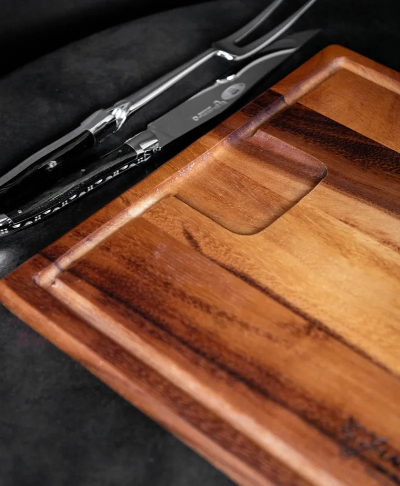 Laguiole en Aubrac Edles Handwerk|Grillen|Tranchierbesteck mit Brett