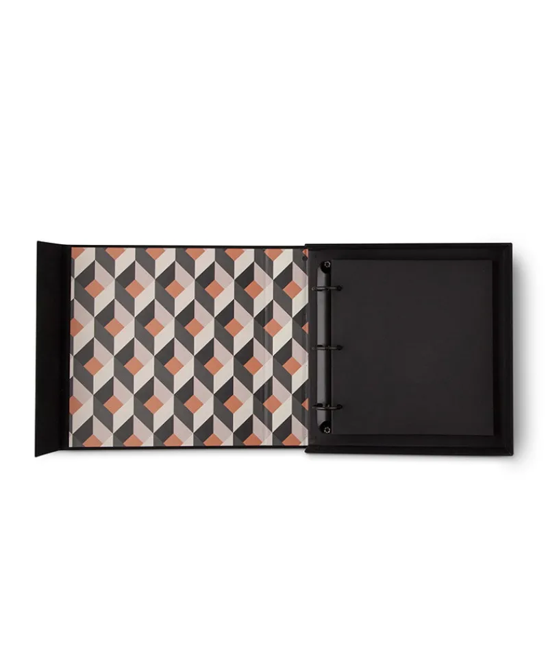 - Innen: Ringbindung mit 30 schwarzen Fotokartons 24,5×24,5cm